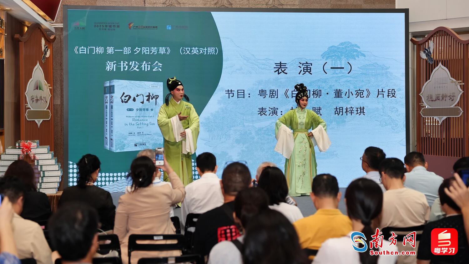 活动现场,香山粤剧团带来了精彩的粤剧表演《白门柳・董小宛》选段,水袖轻扬,演绎出乱世红颜的悲欢,赢得了阵阵掌声。随后,徐启腾先生和褚凯乐先生用英文朗诵了《夕阳芳草》经典段落,现场同步投影中英字幕,让观众感受到了两种语言下同一部作品的文学魅力。