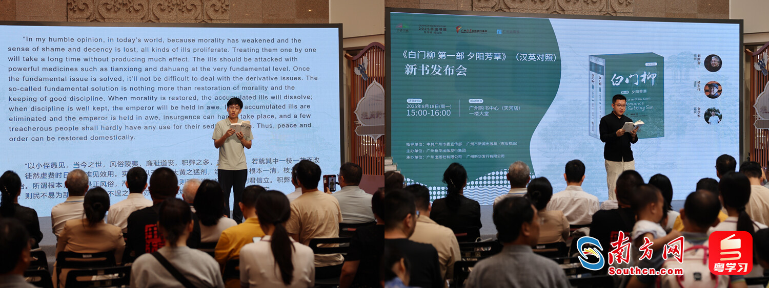 8月18日下午,《白门柳 第一部 夕阳芳草》(汉英对照)新书发布会在2025羊城书展分会场举行。本次活动由中共广州市委宣传部、广州市新闻出版局(市版权局)指导,广州新华出版发行集团主办,广州出版社有限公司和广州新华发行有限公司承办,吸引了众多文学爱好者与业界人士齐聚一堂,共同见证这部经典文学作品的全新亮相。