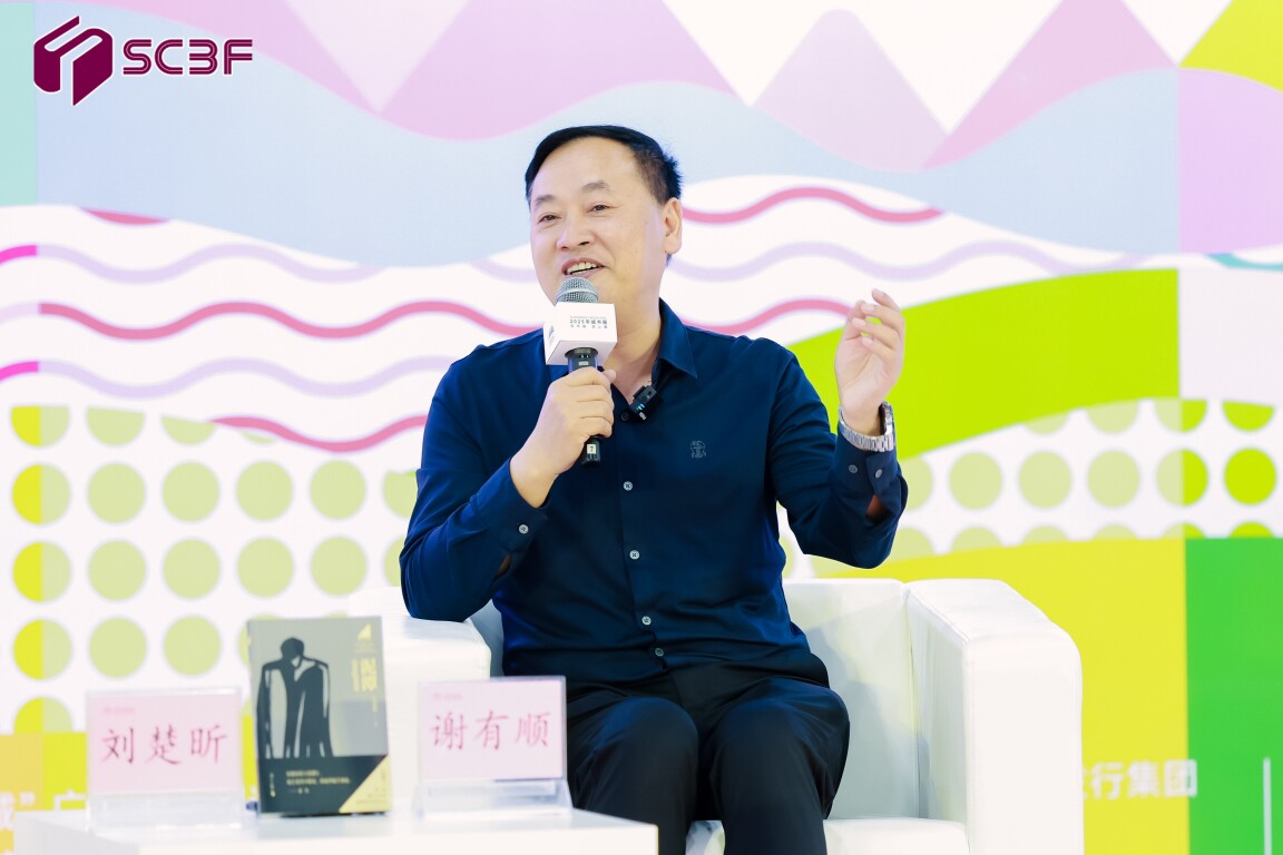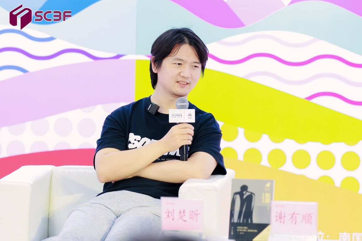 在交流“写作时愈用力愈深陷”的原因时,两人围绕个人在不同身份下的思考与坚持展开,提及从哲学思考者到获奖作家的转变过程以及对纯粹理想追求的坚守。刘楚昕通过回顾人生历程,讲述不同身份赋予自己的思考与成长,认为在面对挑战时一定要保持初心与纯粹想法。谢有顺也和大家分享写作过程中删减与精炼的重要性,强调了在消费时代作家更应该保持高文字标准的美学追求,通过删减修改达到作品精炼。