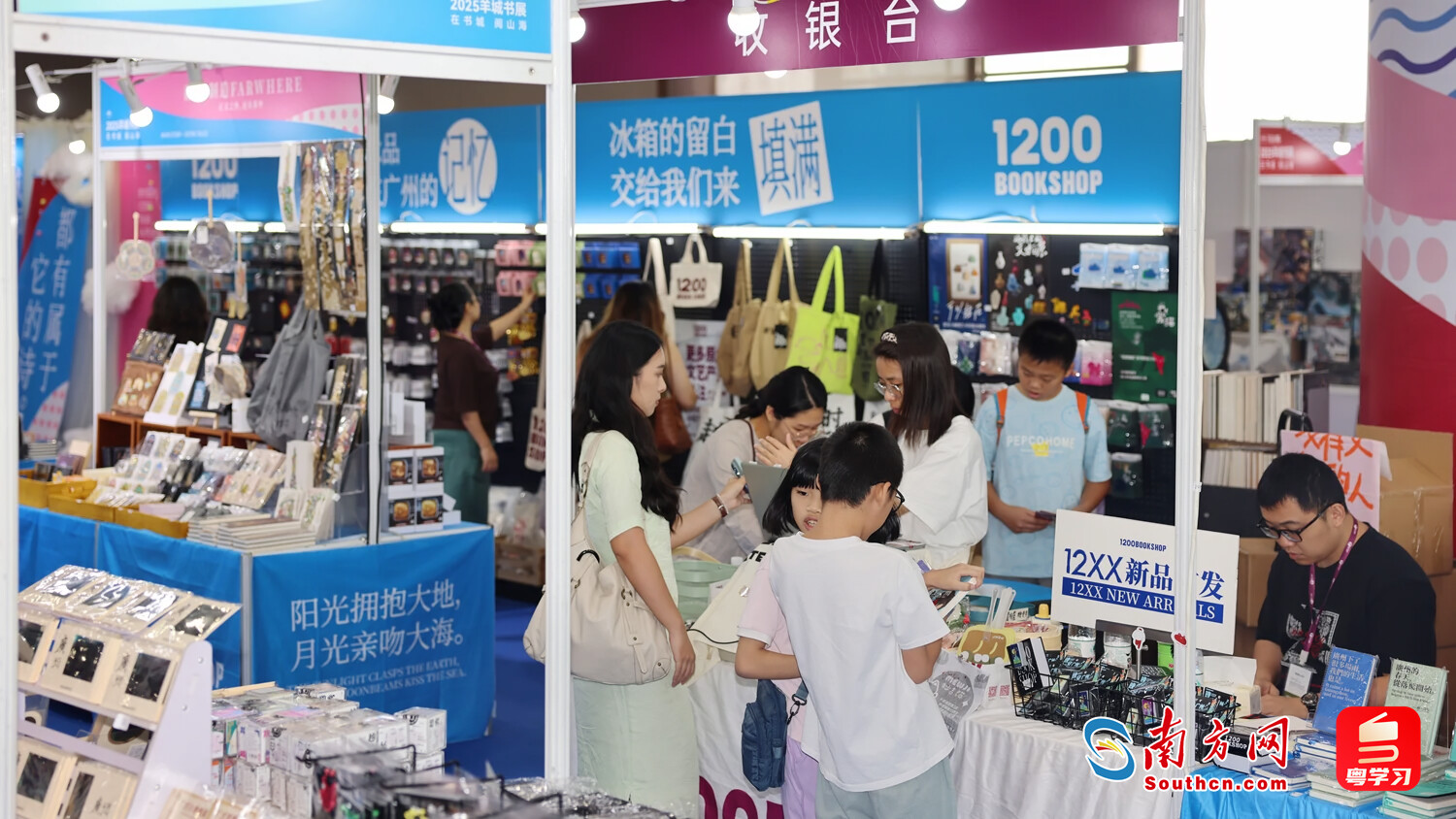 在2025羊城书展主会场内,广州新华发行有限公司、甘泉书院、扶光书店、集雅斋(古籍)等以各自不同的特色和风格开门“营业”,让不少热爱打卡书店的观众流连忘返。其中,1200书店5天销售11.37万元,“看见广州”冰箱贴、广州扑克牌、“开往夏天的列车”流沙亚克力冰箱贴等原创新品也成为备受欢迎的文创亮点。
