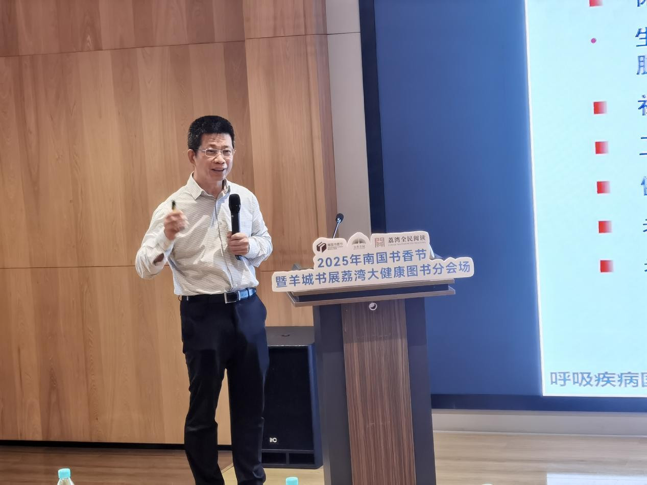 8月17日上午,南国书香节荔湾大健康分会场,《呼吸康复手册》作者、呼吸疾病国家重点实验室郑则广教授的主题演讲在此拉开帷幕。开场白中,他讲述了一个令人动容的故事:一位曾濒临死亡的患者,经过治疗和系统康复训练,不仅心肺功能完全恢复,更重返工作岗位,过上了健康人的生活。这位曾经的患者就是郑则广本人、当年的抗击非典英雄!这个真实案例让现场观众深刻感受到呼吸健康与科学康复的重要意义。