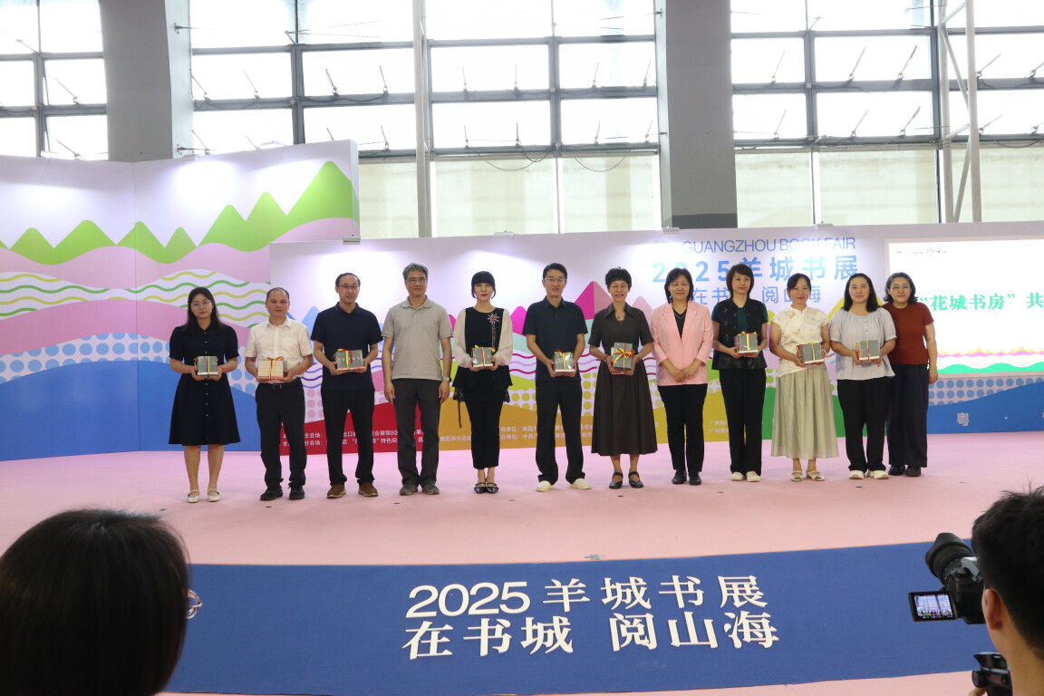 活动最后,“书香羊城”全民阅读活动组委会向来自花山镇新和村农家书屋、花东镇大东村农家书屋、花都湖“花语书房”自助图书馆、中国邮政广州分公司、潮州凤凰单丛茶博物馆、广州市秀名城文化有限公司、增城甘泉书院、广州巴士集团以及广州市委统战部马来西亚槟城海外花城书房的9位代表,赠送了“带你读懂广州”书系及《半小时爱上广州》丛书。