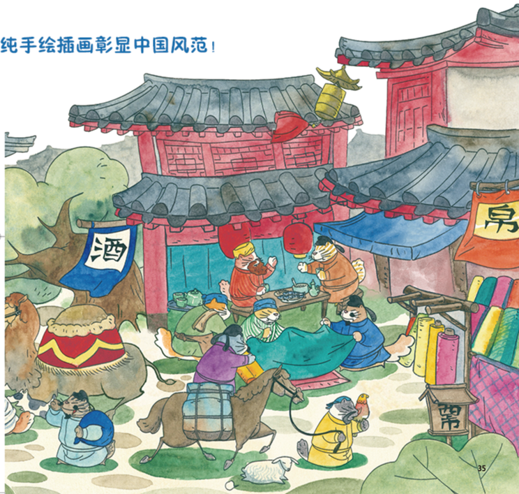 这套书共分七卷,涵盖数学、医学、地理、征战、科技、农耕、奇书七大领域,收录国风手绘插画逾500幅,堪称一部微型“中华典籍百科”。与传统典籍读物不同,该书创新性地以Q版萌猫为知识讲解员,这些神态灵动的小猫化身历史人物,在幽默对话中演绎《九章算术》《本草纲目》《天工开物》《山海经》等经典。无论是《洗冤集录》的“宋慈探案剧本杀”,还是《山海经》的“神兽进化论”,都将复杂知识点转化为孩子听得懂、记得住的表达,彻底打破“古籍=枯燥”的刻板印象。