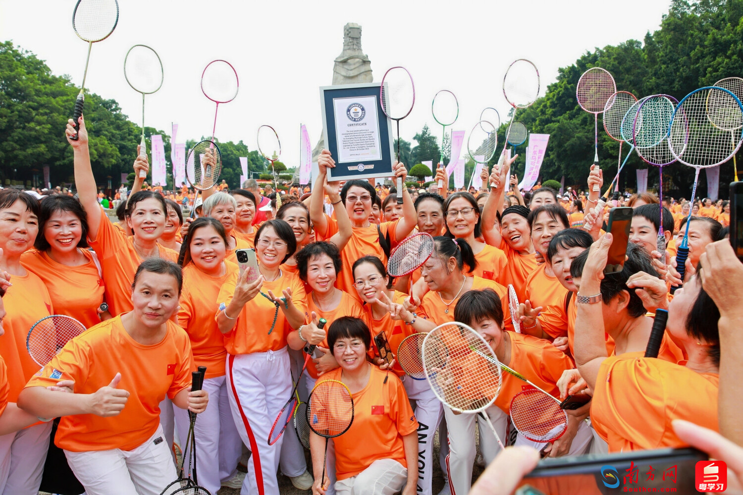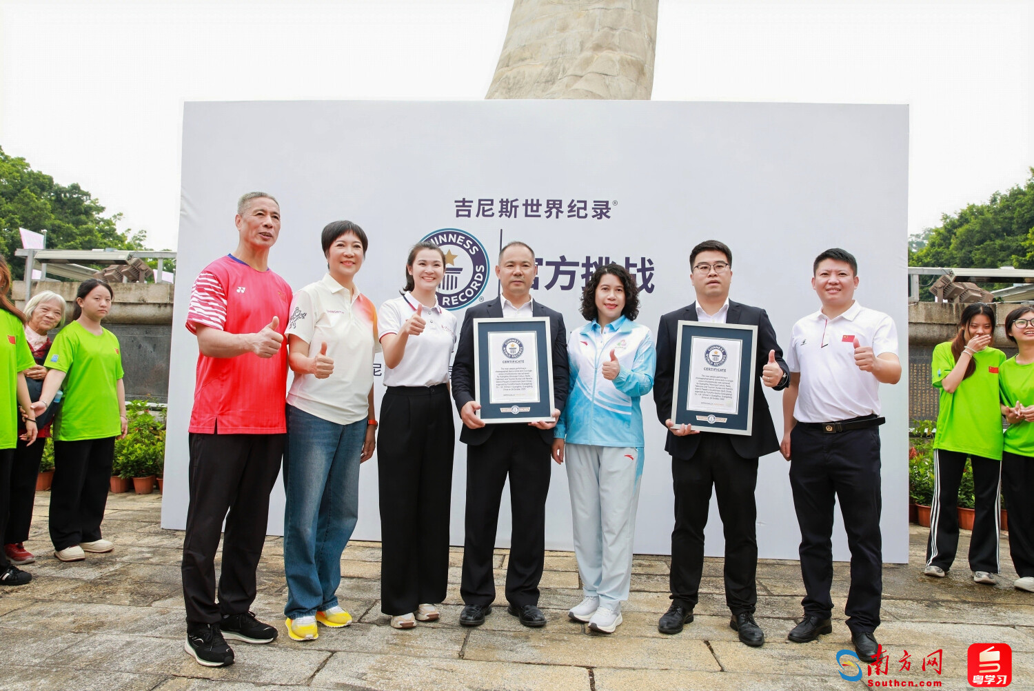 活动现场,广州联动湾区城市在主会场组成2000人挑战队伍,同时云端连线北京、上海、香港等13个分会场,线上线下同步挑战万人羽毛球操,呈现一场气势恢宏的群众体育盛会,最终由吉尼斯官方现场认证成功,“最多人同时表演羽毛球操”纪录诞生。