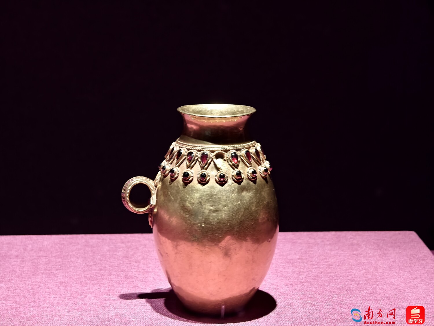 此外,展览现场还有造型各异的来通杯,生动复原了贵族奢华的宴饮场景;希腊化时期的橄榄叶金冠折射出极致的艺术审美与工艺水平;萨珊国王孤品印章因尺寸大、雕刻精、铭文长而尤为珍贵。