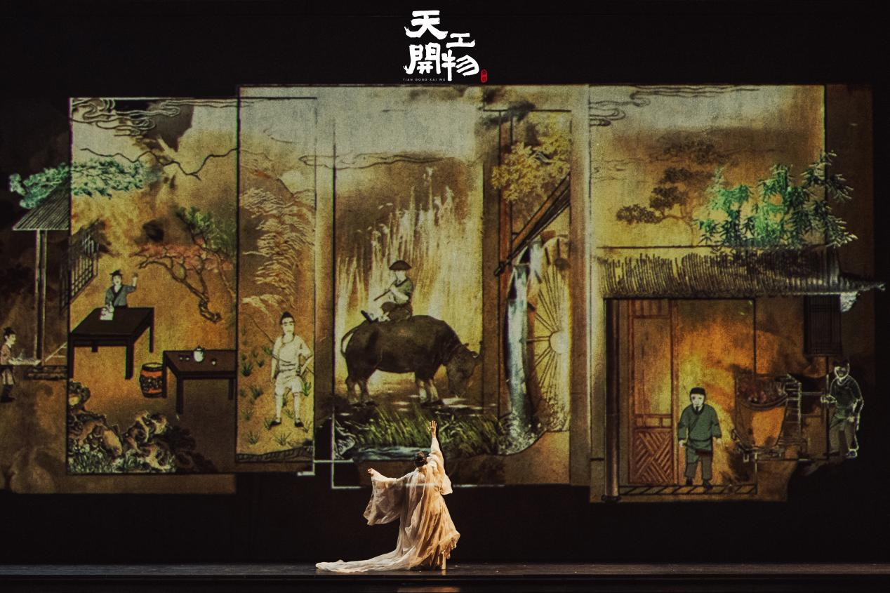 舞剧取材自科技著作《天工开物》,该书被誉为“十七世纪中国影响世界的百科全书”,其作者宋应星也被达尔文、李约瑟等科学家誉为“中国的狄德罗”。
