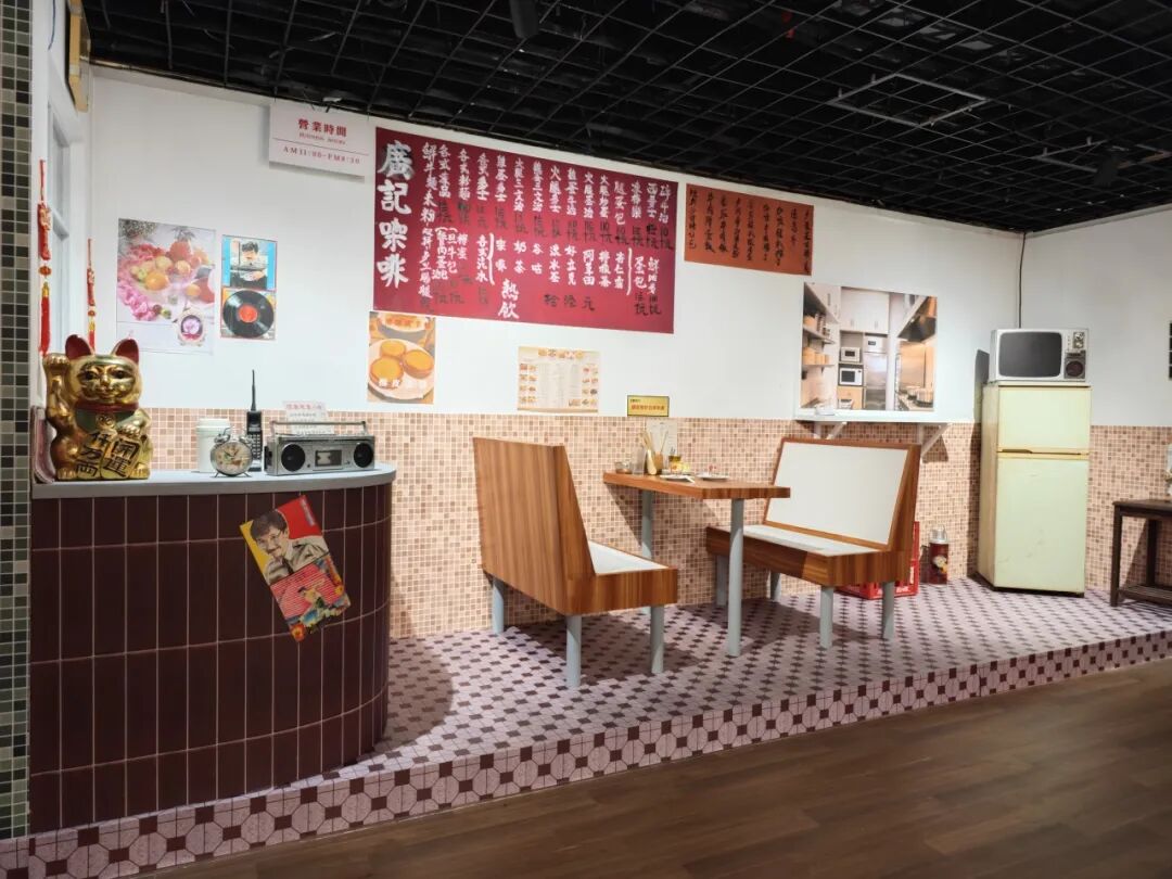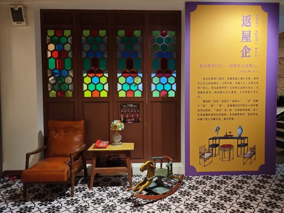 与传统的实物展览不同,“粤语•粤物”展览以粤语为主要“展品”,粤物则作为辅助“注释”,帮助观众更好地理解展板上的各类俗词俚语。展览开篇,首次展出了可追溯粤语历史的中古汉语音韵古籍、充斥着舶来词汇的百年旧报纸,也有中国人编纂的第一部汉英词典、被革命志士视为宣传阵地的粤语刊物,还有收录了风靡海内外的粤语金曲磁带等,带观众回顾粤语的起源、发展历程以及时代影响力。展览现场设置了五个生活小场景,围绕“着衫”“行街”“食饭”“睇戏”“返屋企”五个主题展开,配以主题音频,营造出浓厚的广东氛围。
