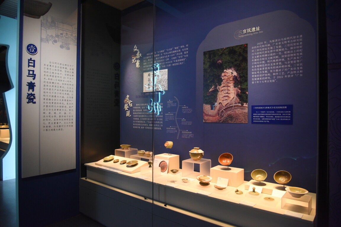 第一部分“白马青瓷”。以惠州白马窑为切入点,展示其作为广东目前经发掘的规模最大的明代窑址群考古成果。结合文献,通过纪年标本、典型器物等展品,呈现其创烧年代、生产工艺及产品特征。