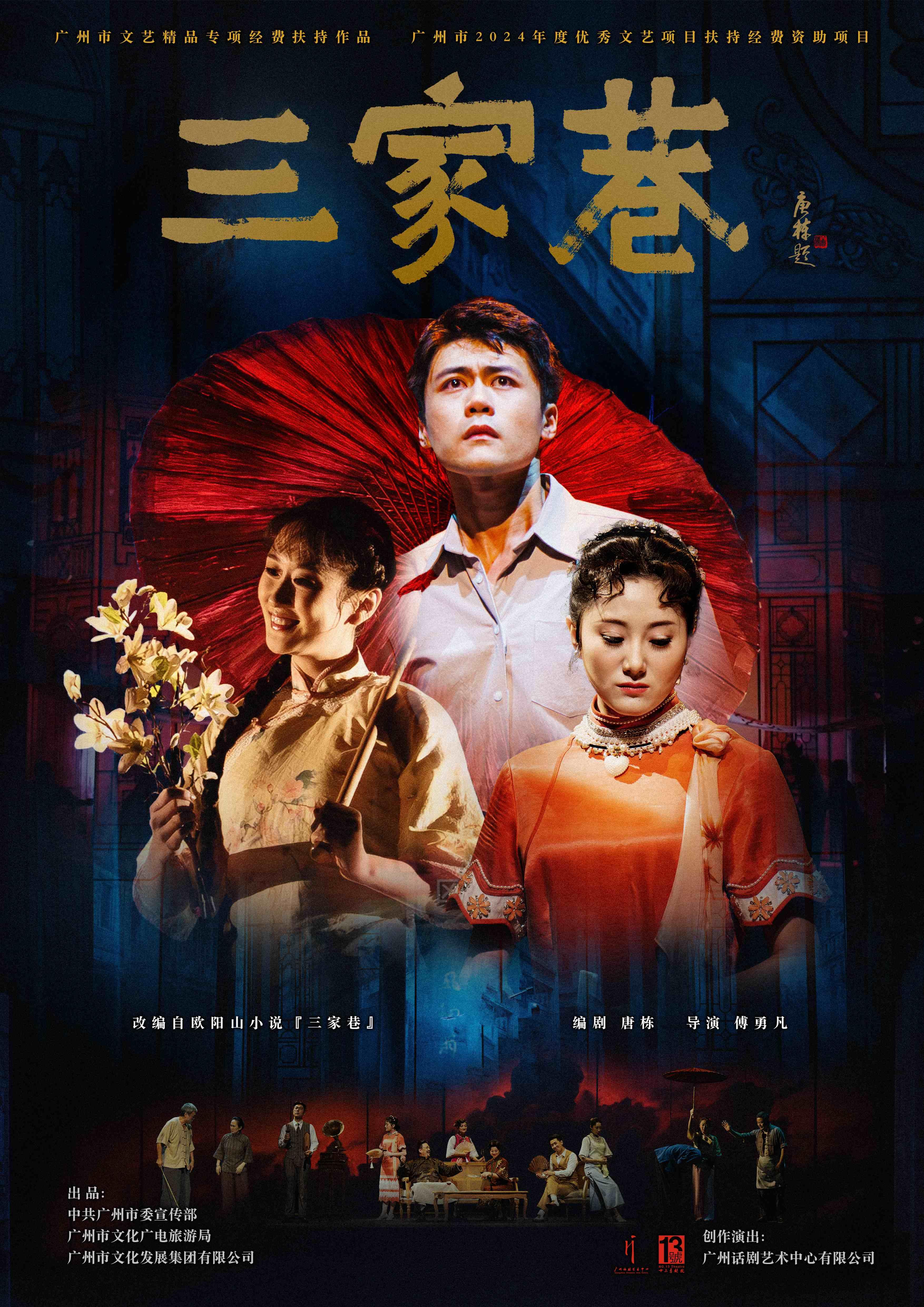 话剧《三家巷》由中共广州市委宣传部、广州市文化广电旅游局出品,广州市文化发展集团有限公司联合出品,广州话剧艺术中心有限公司制作演出。