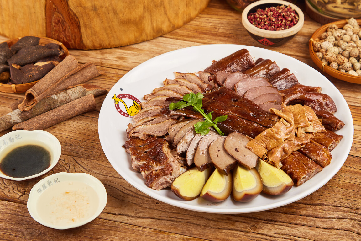 介绍:精选澄海狮头鹅与传承老卤水,经数小时慢火卤煮而成。卤鹅拼盘象征着对过去一年辛勤的酬谢,开启新年盛宴。