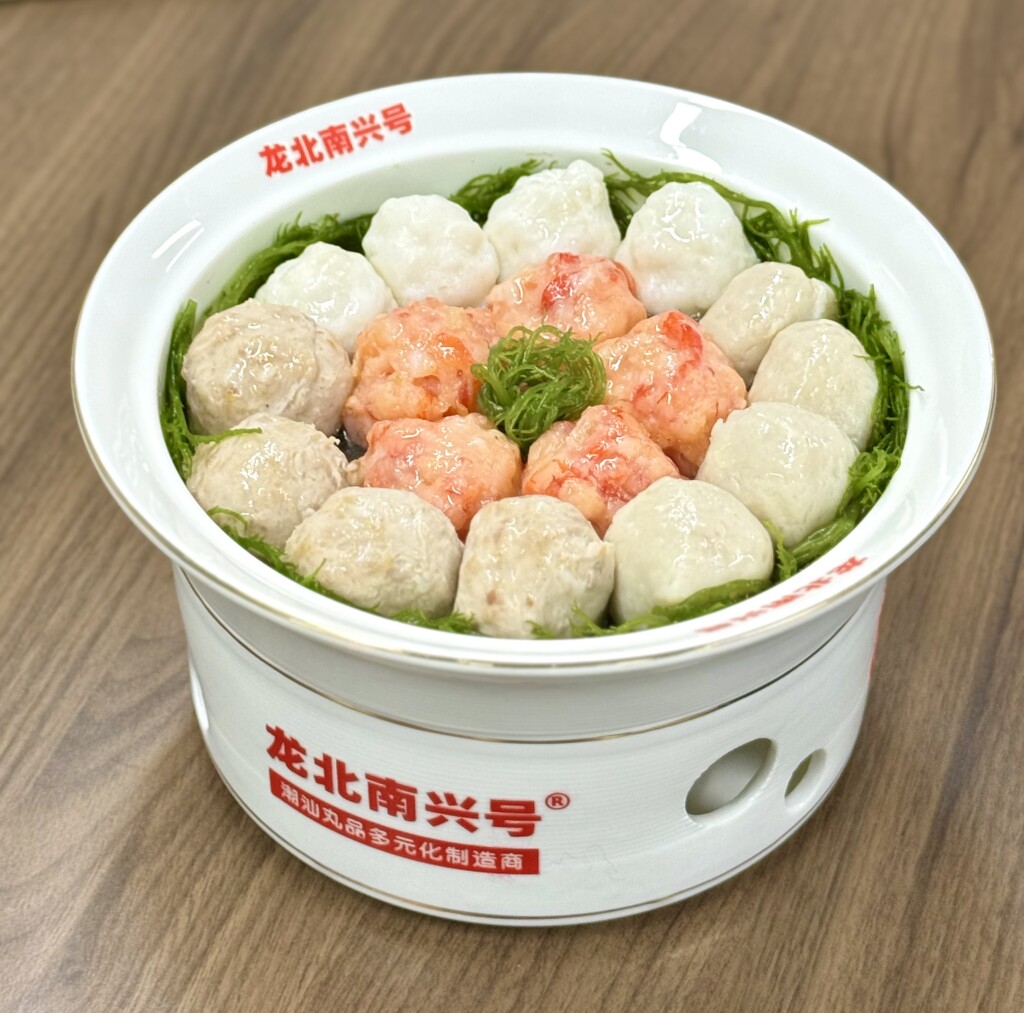 特色:四种丸子精选不同食材,手工现制,口感弹爽,风味交融却不互掩,体现潮汕人的匠心。