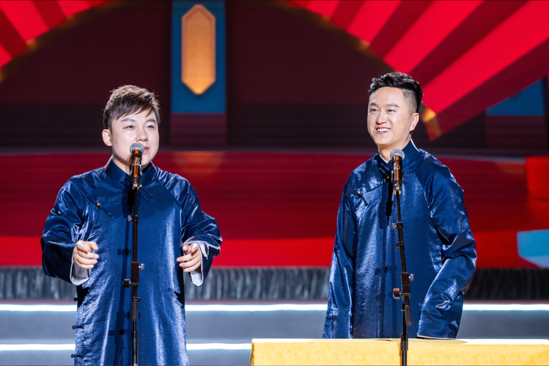 本土作品开篇后,山西省曲协副主席弓瑞和侯派相声传承人、青年相声演员耿麟带来的相声《欢歌笑语》;幽默滑稽表演艺术家刘全和、刘全利演绎的小品《小鸟与蜜蜂》;著名喜剧表演艺术家巩汉林、金珠夫妇带来小品《幸福岁月》;著名粤语相声表演艺术家黄俊英和年轻弟子潘泓博合作粤语相声《一对一》,把晚会气氛一次次推向高潮。