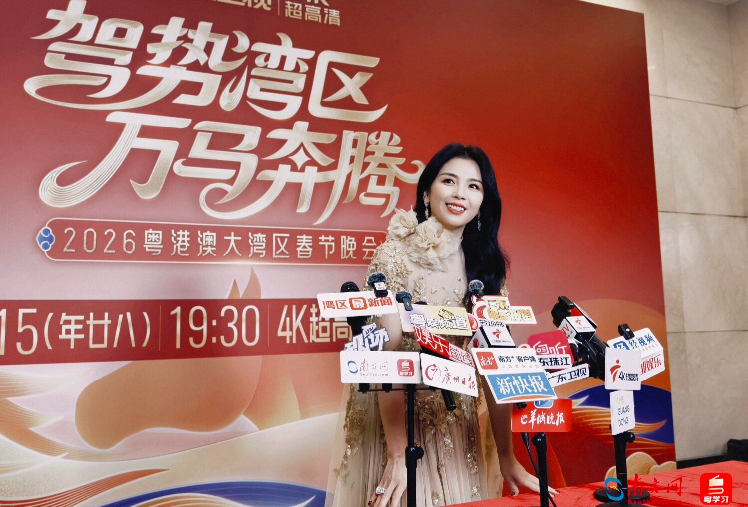 1月19日,广东卫视《驾势湾区 万马奔腾——2026粤港澳大湾区春节晚会》在广东广播电视台火热录制。演员刘涛现身大湾区春晚录制现场,这次她将在大湾区春晚中献唱新民谣《汤》。
