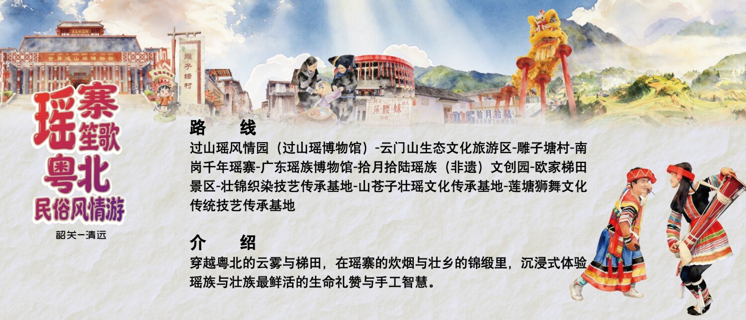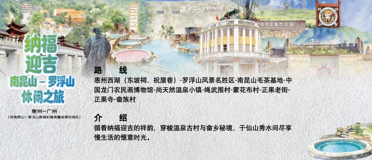 10条线路包括“醒狮贺岁·广府寻味游”“疍家渔火·深汕滨海拾趣之旅”“年味飘香·珠中江水乡漫游”“英歌闹春·潮汕文化体验行”“纳福迎吉·南昆山-罗浮山休闲之旅”“龙舞踏春·东江揽胜行”“瑶寨笙歌·粤北民俗风情游”“客潮双韵·梅揭双城文化行”“年例欢腾·粤西民俗游”“新春祈福·西江人文游”。