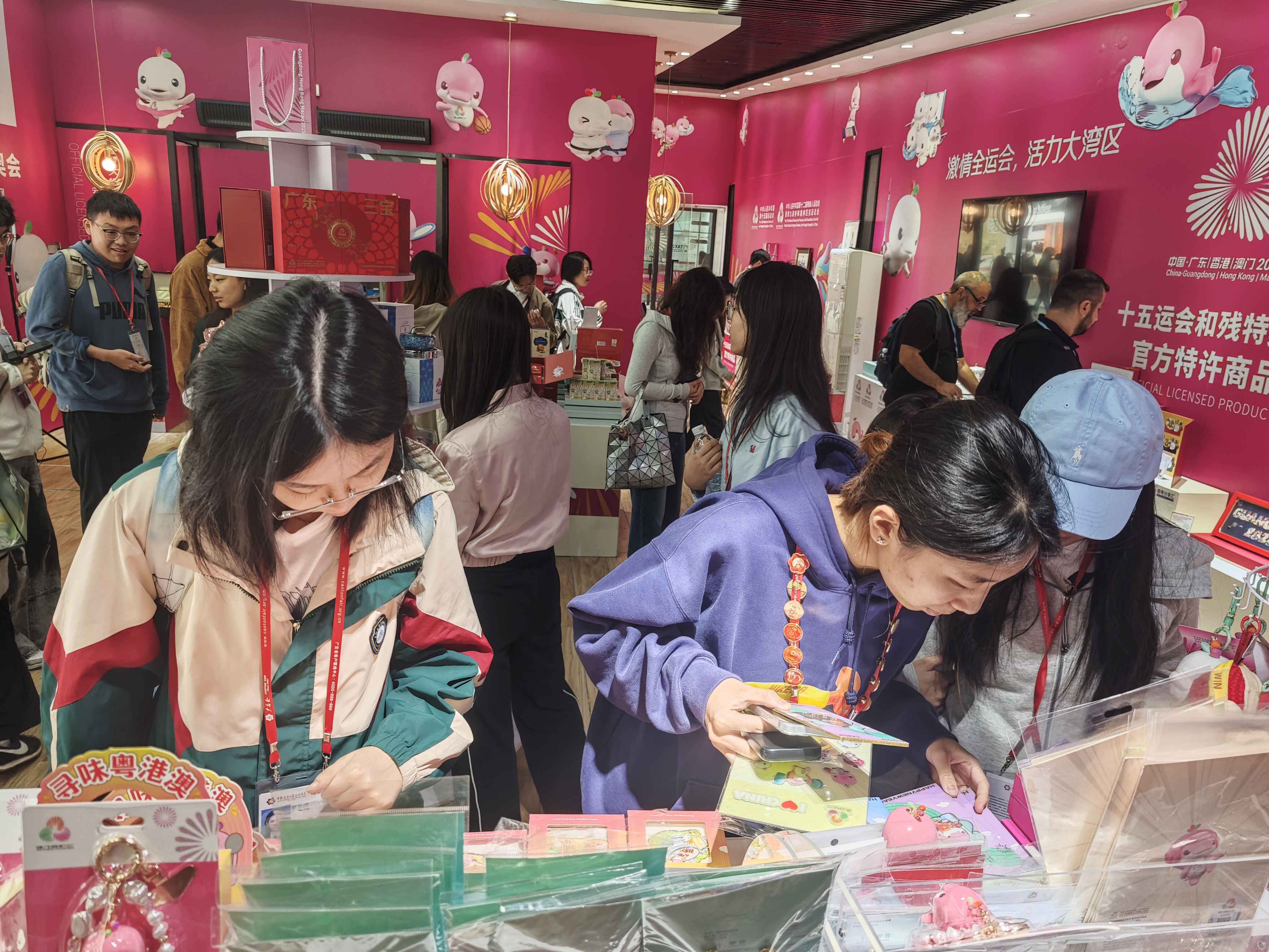同学们走进广交会场馆内的十五运会特许商品零售店,在欣赏设计精美、趣味横生的文创商品之余,通过特许商品上的版权标识和防伪措施,了解到从设计创作到生产销售等相关流程的版权管理,感受到大型赛事中版权保护的细致入微。