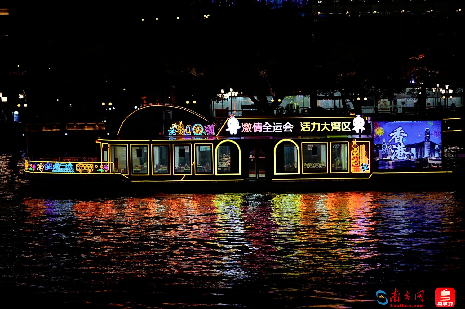 除了“全运号”游船,客轮公司还推出三艘以粤、港、澳为主要设计理念的的全运会主题花船,匠心设计紧扣全运会核心主题,深度融合粤港澳地域特色与文化底蕴。
