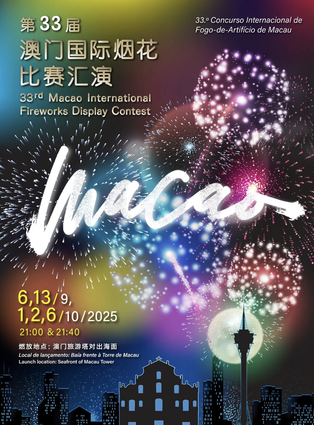 第33届澳门国际烟花比赛汇演(国庆专场)点亮珠澳节日夜空,来自中国、葡萄牙、菲律宾、日本四个国家的顶级烟花公司于此进行角逐,为游客打造了视觉震撼的狂欢盛宴。