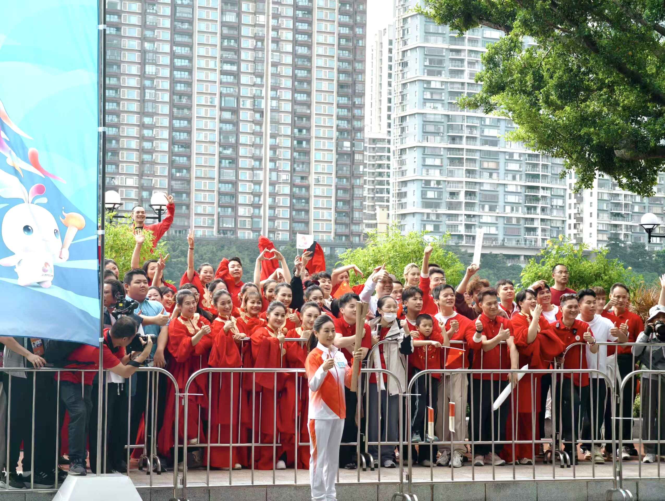 在市民们热情的欢呼与掌声中,国家级非遗(粤剧)代表性传承人、粤剧表演艺术家曾小敏接过第十五届全国运动会火炬手的第21棒。她手持火炬,在明媚的风光与众人的注目中迈步奔跑,完成了属于她的荣耀传递。那一刻,飞扬的粤剧水袖与跃动的火焰交相辉映,传统艺术之美与体育精神完美融合。