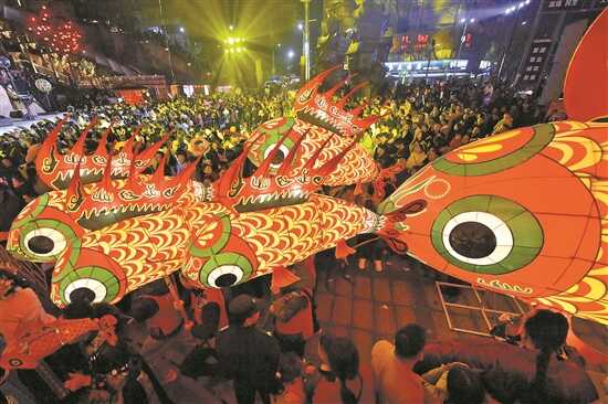 湖北省宣恩县城兴隆老街上的鱼灯巡游