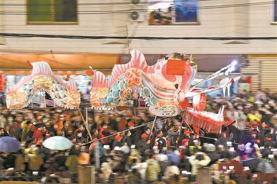 福建省龙岩市连城县姑田镇进行元宵游大龙民俗活动