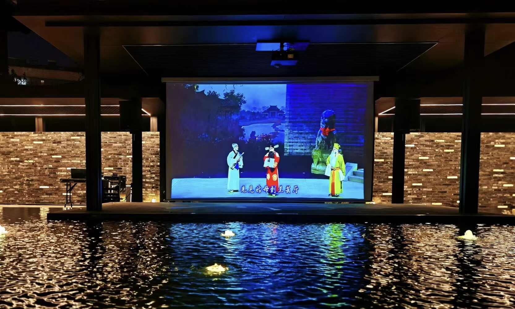 春节假期,江苏淮安御码头花间亭·御守里酒店播放的非遗淮剧 酒店供图