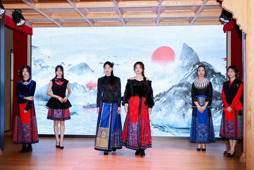 秀场上,香云纱所制的莨绸衣微微摆动,钉金绣裙褂上的金银丝线熠熠生辉,马面裙展开圆似规、裙摆压褶方如矩,演绎着独特浪漫的东方情怀。