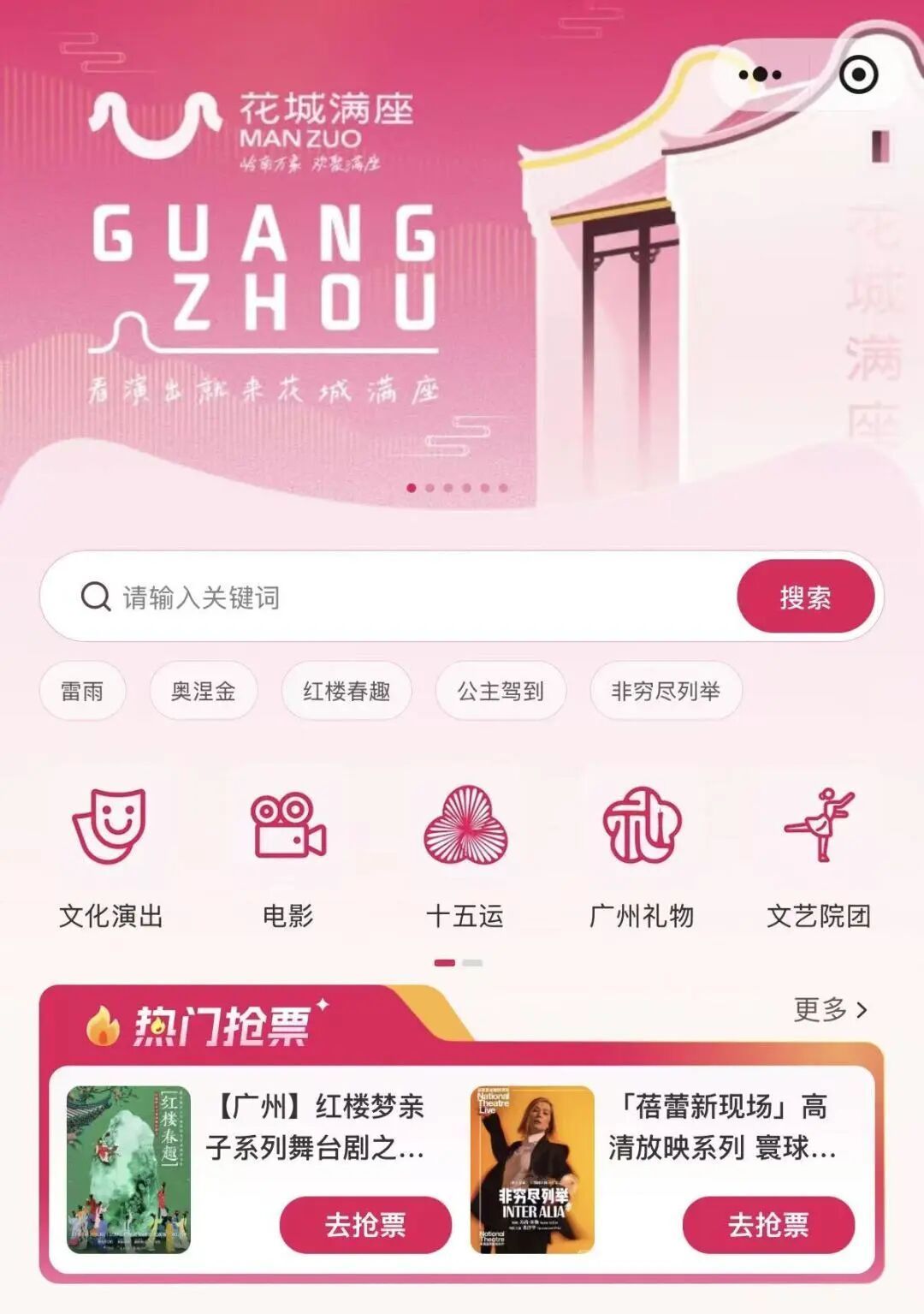 作为广州文化集团重点打造的核心项目,“蓓蕾花城满座”购票小程序承载着整合区域文商旅体资源的重要使命。近年来,广州文化消费市场日益繁荣,广州文化集团立足自身涵盖演出、电影、文创、研学、会展、培训、活动、体育等多元领域的资源优势,积极联动下属优质文商旅体机构,打造了“蓓蕾花城满座”购票小程序,构建起丰富的文化消费场景矩阵。通过该小程序,广大市民群众和网友无须在多个平台间切换,即可一站式获取海量优质文商旅体资源信息,轻松完成购票、预约等操作,真正实现“一屏在手,欢乐无忧”。