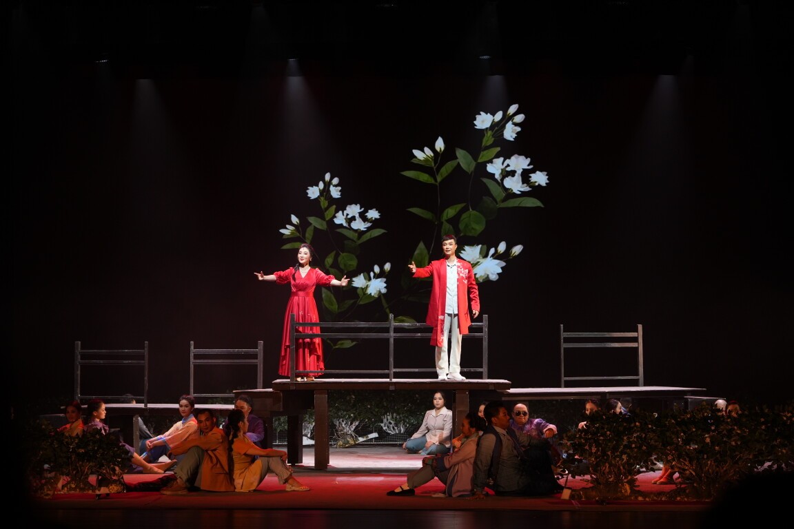 《天香》将邕剧和茉莉花相结合,以花喻人,共同构建出一部蕴含独特人文韵味的艺术之作。在剧中,景色秀丽、物产丰饶的横州与淳朴热烈的民族风情、诙谐动人的爱情故事巧妙融合,古老的戏曲焕发出新时代的魅力,讴歌了南宁人民敢想、敢干、敢为人先,为砥砺前行的奋斗者们唱出了一曲荡气回肠的赞歌。