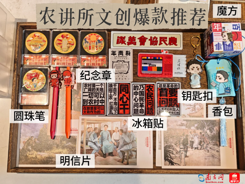 农讲所焕新“农茶小院”,打造新中式茶文化空间,并推出建筑主题冰箱贴、红色文创等特色产品。中共三大会址纪念馆文创店已火热开业,产品以中共三大历史为核心,以会址纪念馆的建筑造型为灵感,涵盖文具、服饰、潮玩、日用品等多个种类,兼具艺术性与实用性。南汉二陵博物馆上新的汉陶鸮形五联罐、宋双凤纹青瓷器盖等纪念徽章和汉饰新生系列文创手串,复现汉宋风韵,让古老美学密码焕新于腕间方寸。