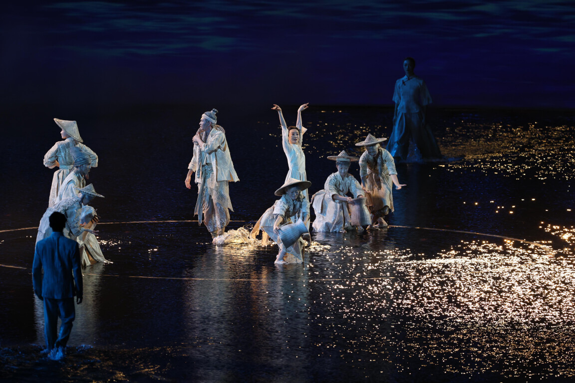 更妙的是,广东的多雨天气反而成了“神来之笔”。王锐祥说,团队将彩排期间的雨水收集起来,直接融入设计,打造出独一无二的“水舞台”,巧妙化解了实际排演中的积水难题,更成就了意想不到的艺术美感。