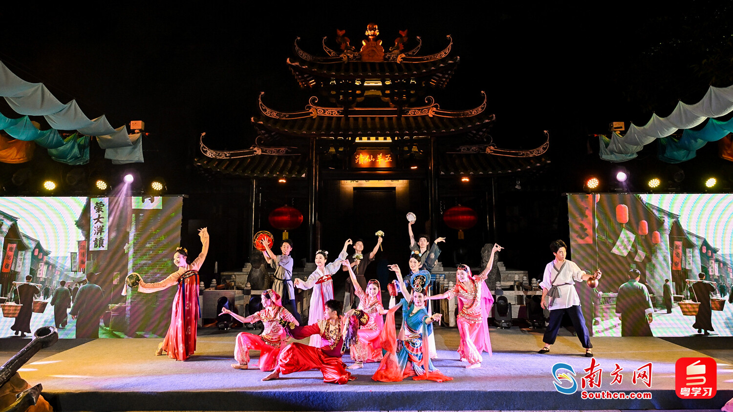 一系列精心编排的文艺节目为市民游客带来了沉浸式的海丝文化体验。情景舞蹈《帆起商潮涌》生动再现了古代航海者劈波斩浪的艰险与广州城万商云集的盛况;海丝主题时装秀《潮创越梦航》创意融合香云纱染整与广绣“双非遗”技艺,呈现跨越时空的美学服饰对话;情景表演《仙临五羊城》则艺术化再现了五仙降临、开门赐福的场景,寄寓了五谷丰登、幸福安康的美好祝愿。