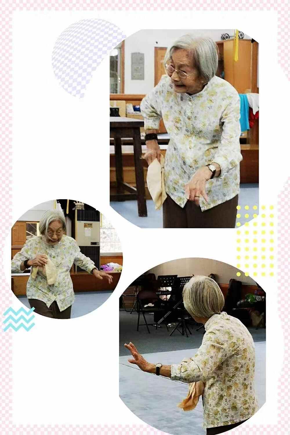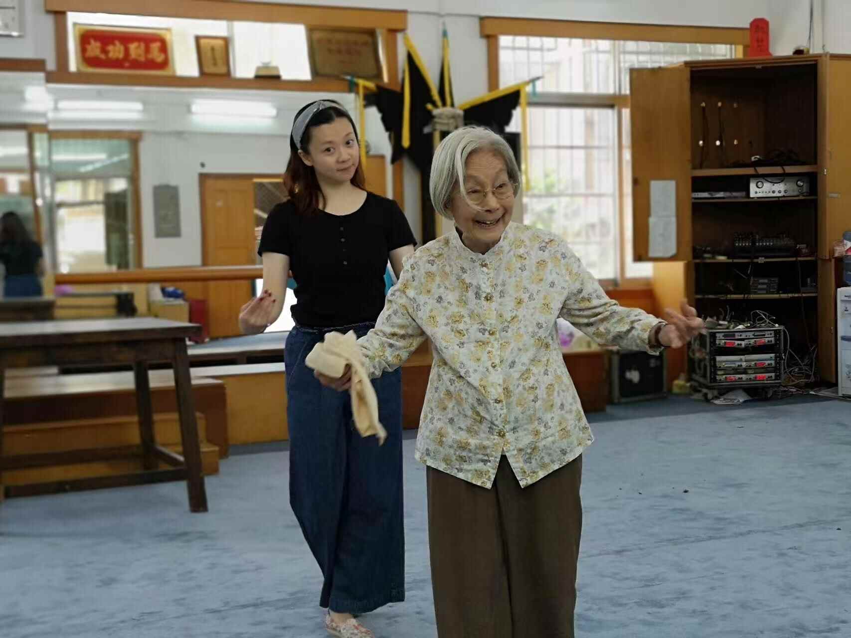 已高龄的小木兰为青年演员示范“罗伞架”
