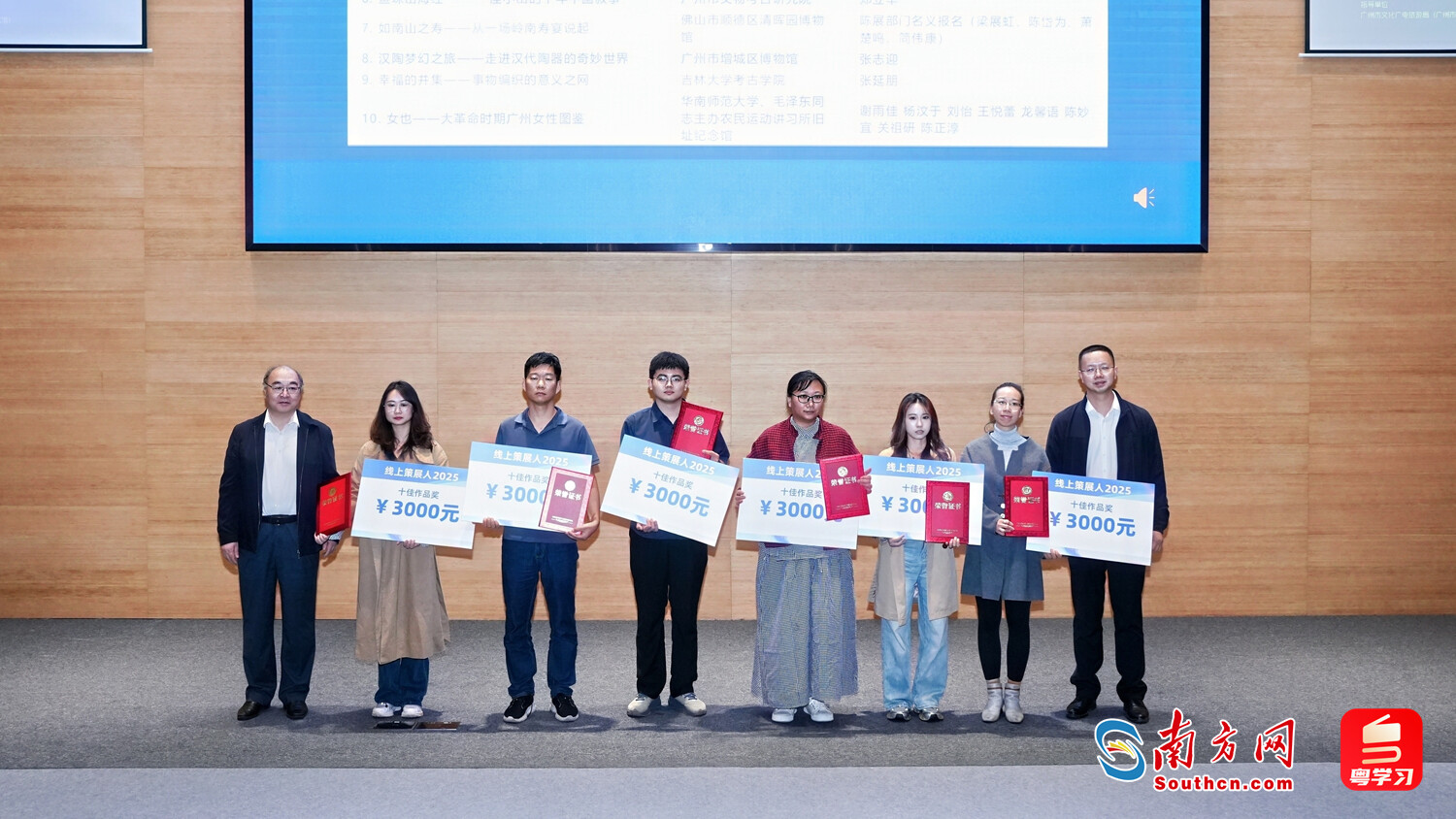 活动现场举行了“线上策展人2025”大赛获奖作品颁奖仪式。2025年,广州市博物馆协会主办了“线上策展人2025”活动,为文博专业人员和文博爱好人士搭建了一个广阔的平台。大赛吸引了全国范围内的个人与团队踊跃参与,共收到263份参赛作品,经过选手认真创作、专家精心指导和严格评审,产生了十佳作品和“最具创意”“最佳海报”“最佳人气”三个单项奖。活动引起热烈反响。9月1日至10月8日的终评公示期间,40份入围作品在记忆网累计收获46.17万次浏览,即便是浏览量最低的作品,也突破了6000次点击。