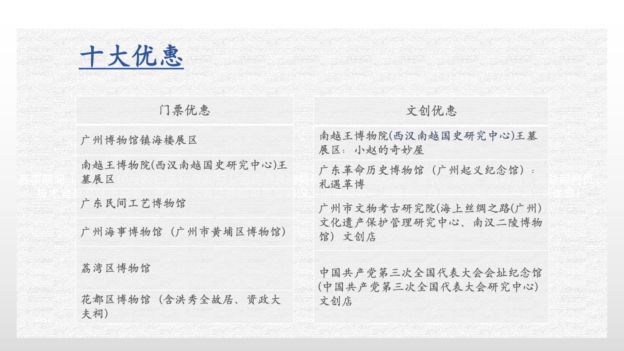 同时,广州文博发布了十条文博线路、十个特色展览、十项专属优惠和十件爆款文创。这些线路、展览和文创,是广州“红色文化、岭南文化、海丝文化、创新文化”品牌的重要载体,有助于参加全运会和残特奥会的海内外朋友更好地品读广州历史、领略羊城风采。