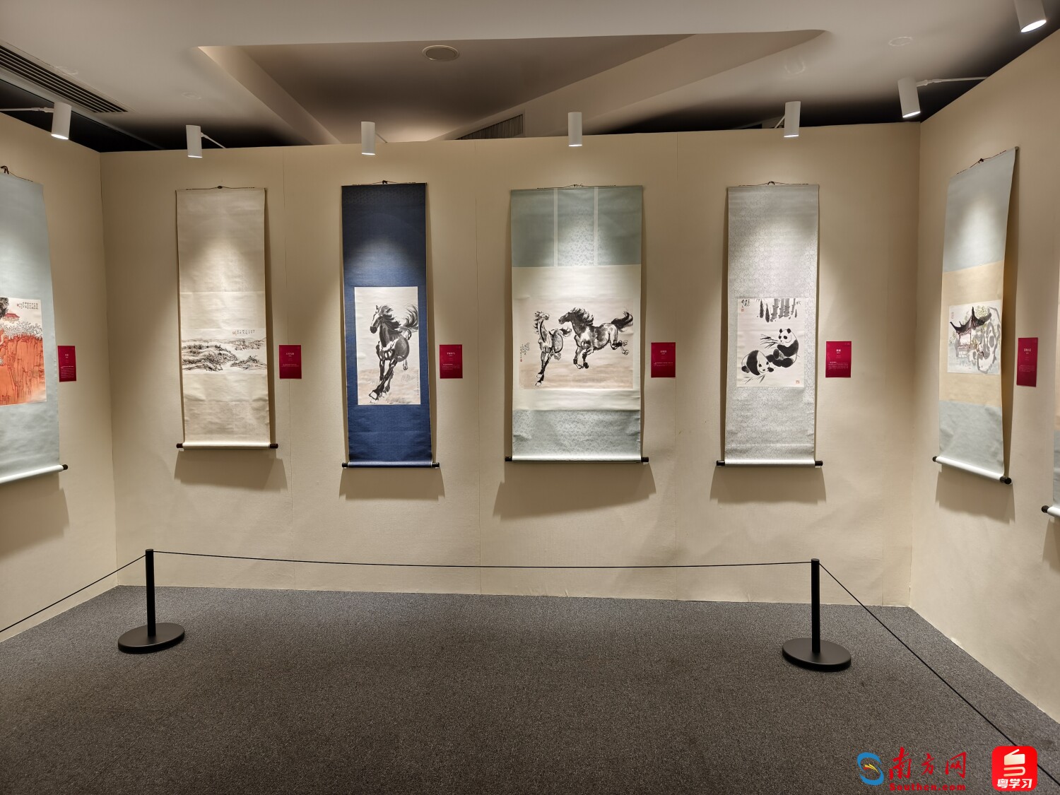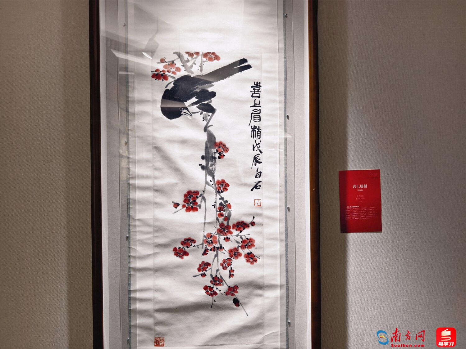 此次展览汇集9幅国画真迹与31幅木板水印珍品:涵盖齐白石《喜上眉梢》《河虾》《丝瓜架》、吴昌硕《葫芦图》《梅花》等写意花鸟佳作;宋文治《峡江高秋》、钱松岩《喜看稻菽千重浪》等山水意境之作;以及黄胄《牧驴图》、魏紫熙《秋色烂漫》等人文雅趣精品。辅助展区通过主题展板与画作详解,延伸展览文化维度。