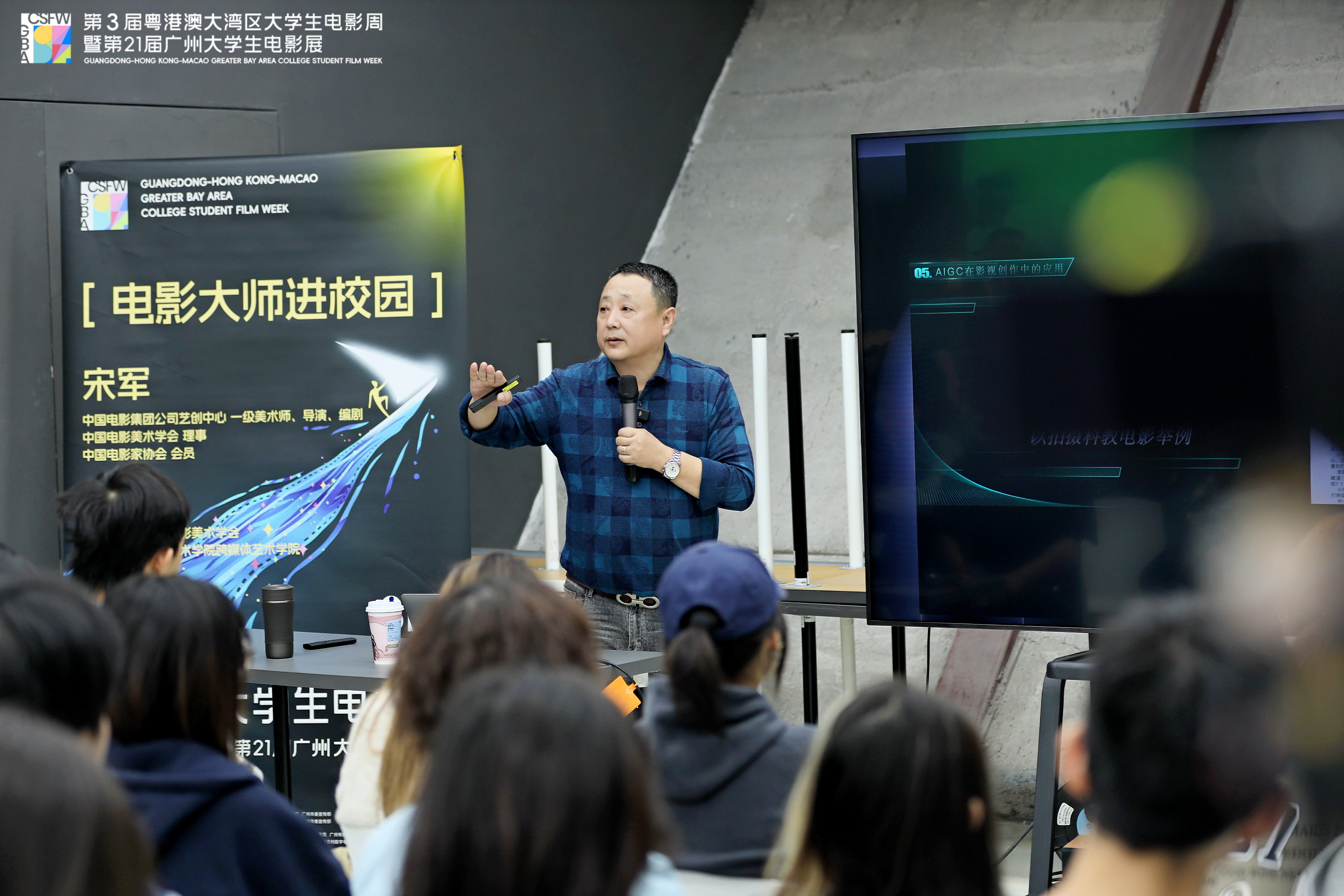 本次活动以“影视创作与AIGC融合的实践探索”为主题,特邀中国电影集团公司艺创中心一级美术师、导演、编剧,中国电影美术学会理事、中国电影家协会会员宋军走进广美,为师生们带来了一场关于人工智能生成内容(AIGC)与影视创作深度融合的前沿分享。