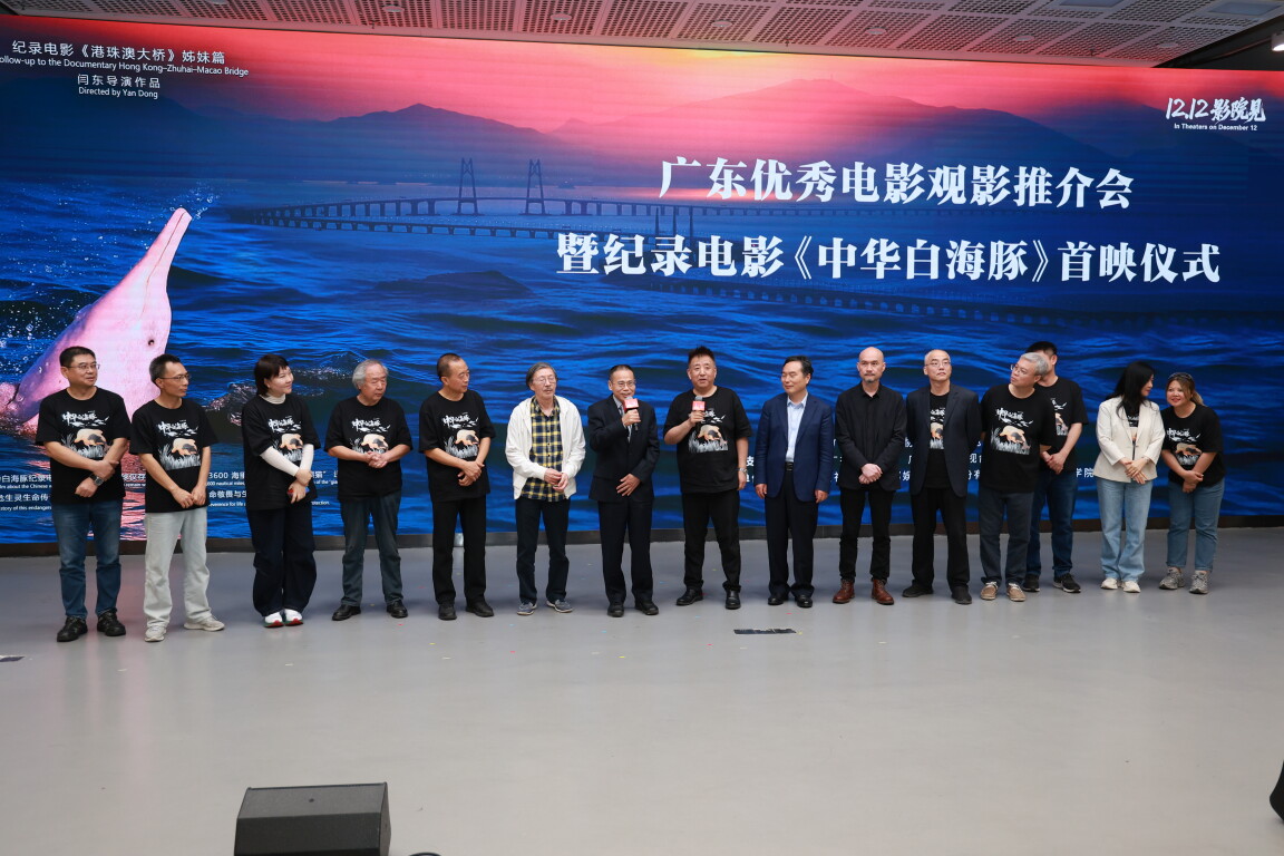 12月7日,广东优秀电影观影推介会暨纪录电影《中华白海豚》首映仪式在广州美术学院大学城校区举行。电影总导演闫东,执行总导演谭世桢、林卫旗等主创代表来到活动现场,与近千名观众共同见证登上大银幕的“水中大熊猫”,并分享创作心得与拍摄过程中的难忘瞬间。活动由广东省电影局主办,广东省电影家协会、广东省电影行业协会共同协办,南方都市报社、南都娱乐公司、广州美术学院承办,中央广播电视总台、广东广播电视台和珠海传媒集团共同支持。